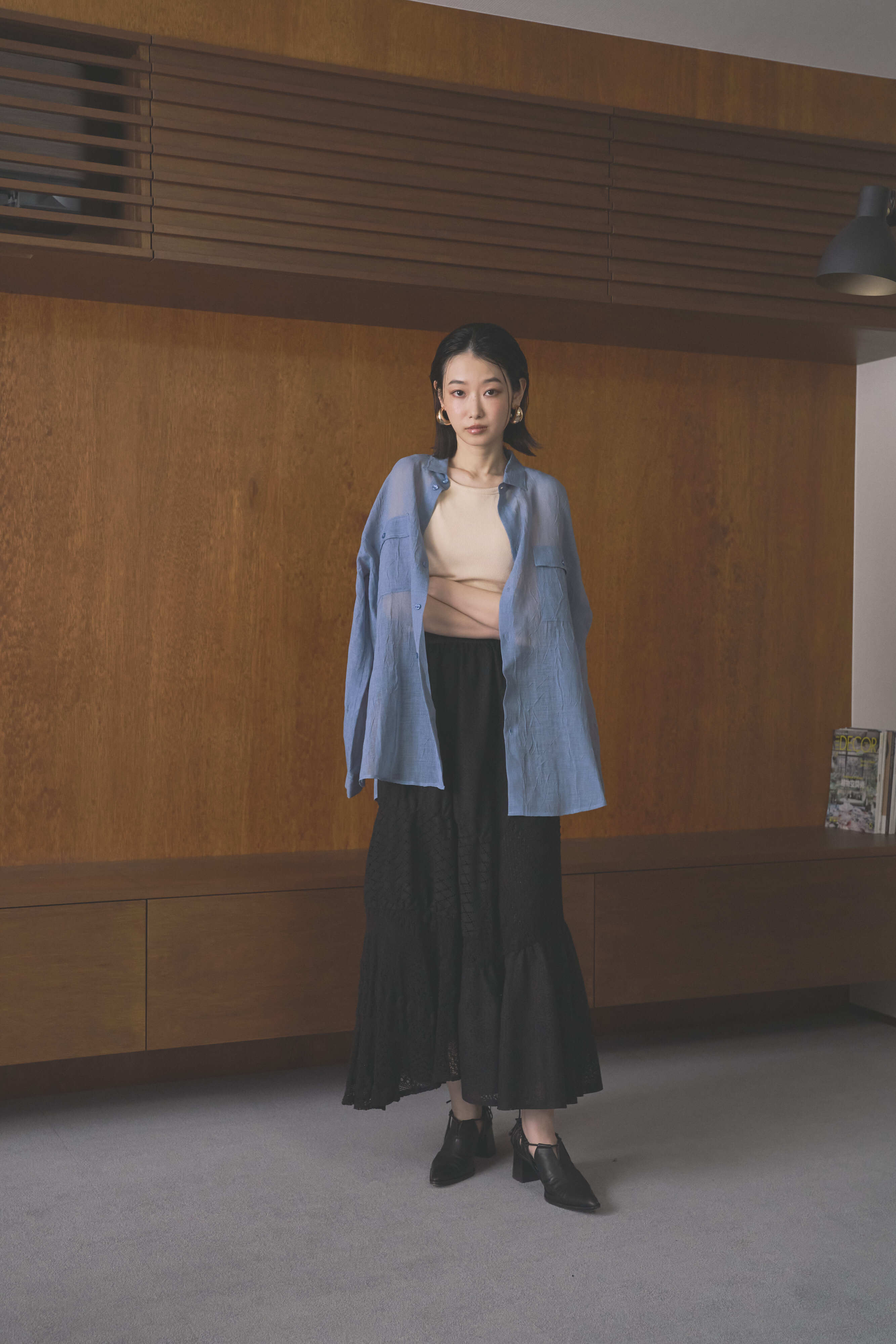 軽やかで柔らかな素材感が魅力で、着用するだけでスタイリングが一段と華やかになります。