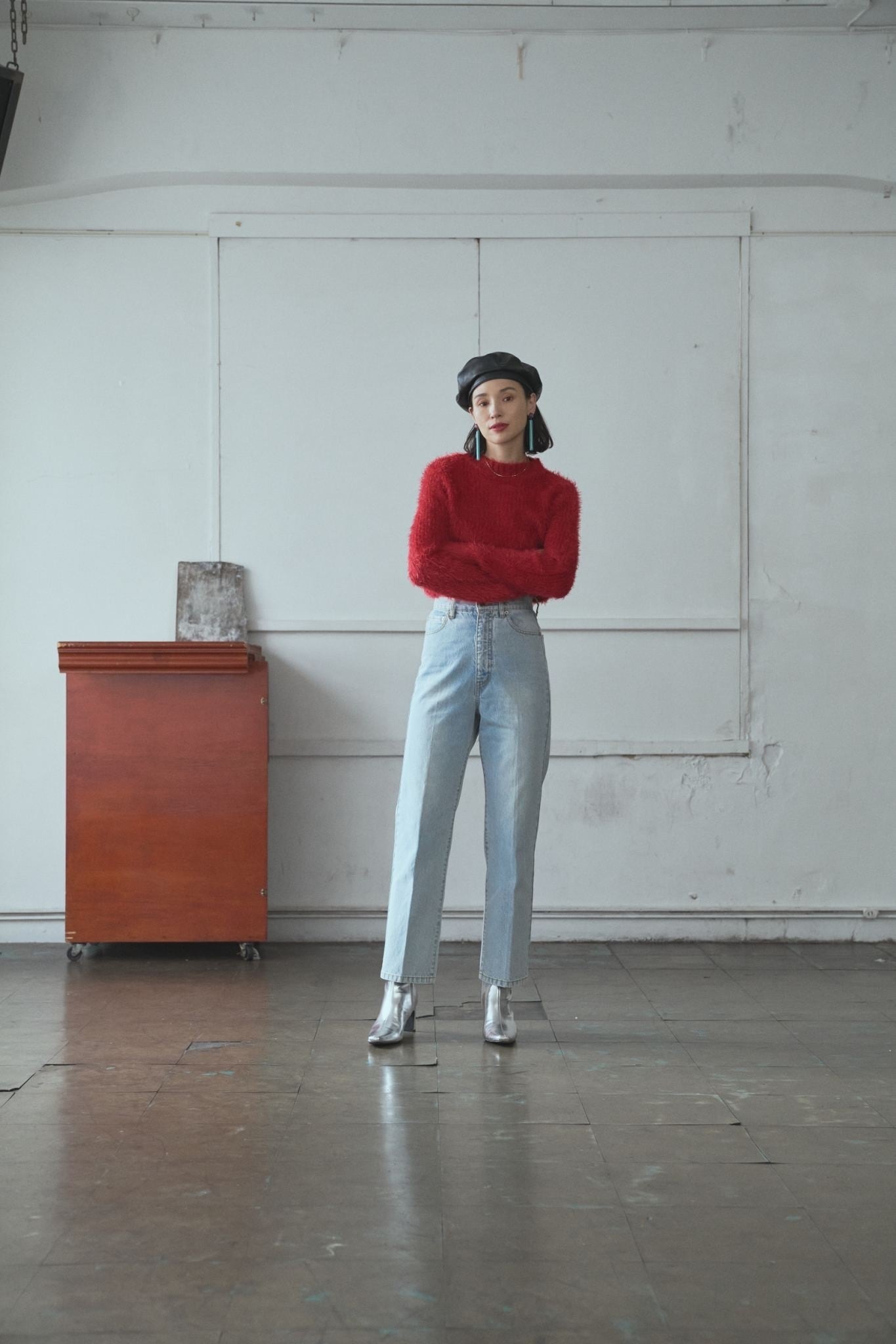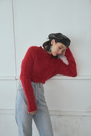 ふわふわとした、モヘアライクな毛足の長い上質な糸を使用し編み立てたニットです。