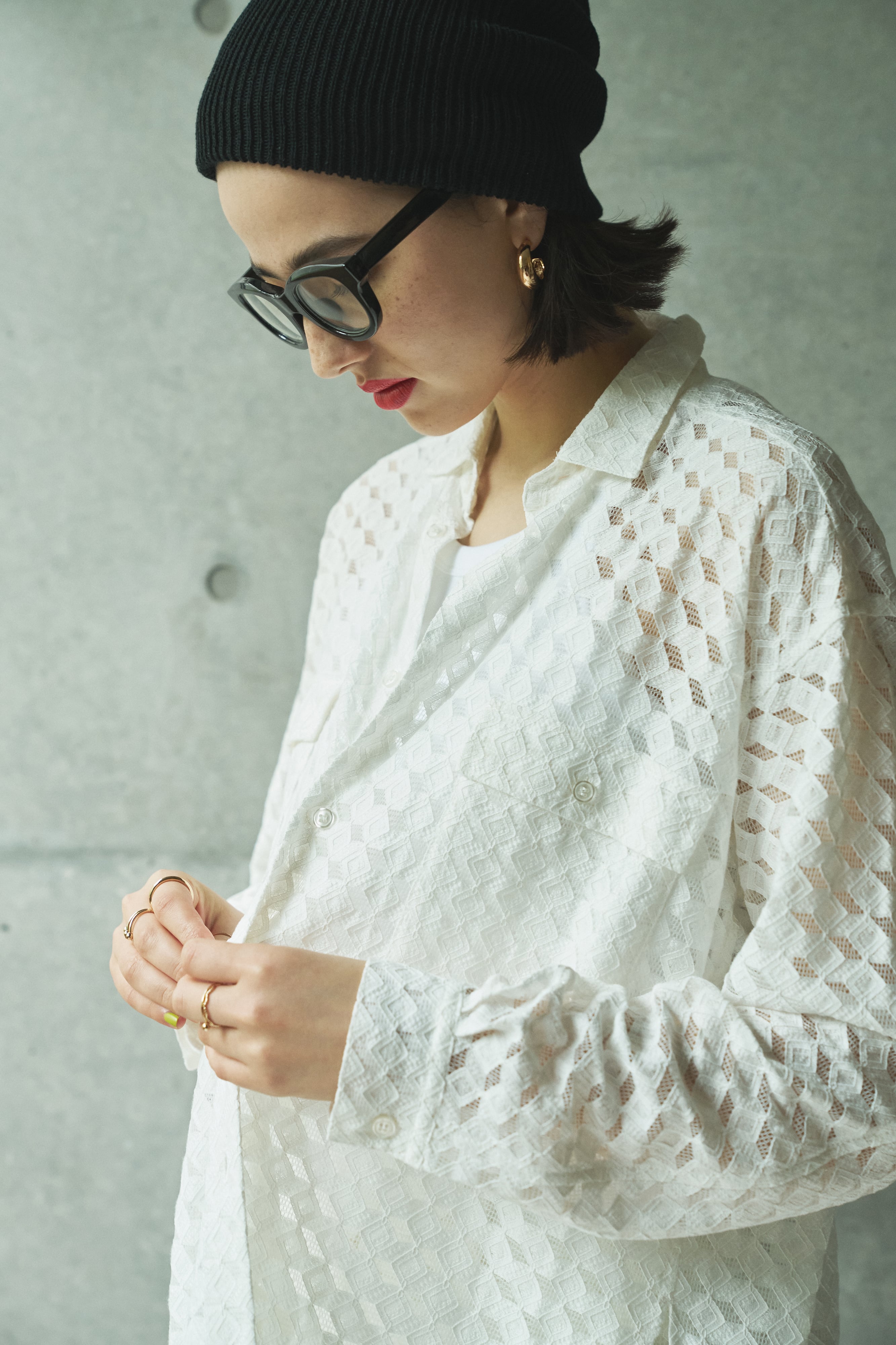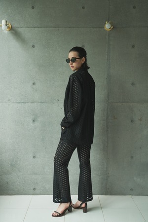 シンプルなデザインでありながら、透けすぎず甘すぎない総レースの素材は、羽織るだけで涼しげで女性らしい印象に。普段甘めなデザインを好まない方にも、レース素材が大好きな方にも、幅広くぜひ挑戦いただきたいデザインのシャツです。