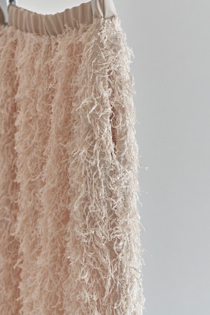 待望のVolume Fringe Skirtがついに登場!このフリンジスカートは、普段使いはもちろん、特別なシーンにもぴったりのアイテムです。動くたびに揺れるフリンジデザインが、エレガントでありながら遊び心を演出します。一枚でコーディネートが完成するので、忙しい朝もおしゃれを楽しむことができます。